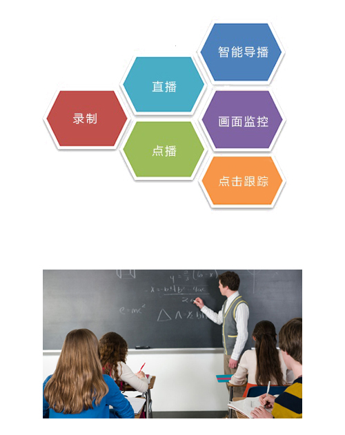 教育錄播系統(tǒng)集高清視頻跟蹤、編碼、導(dǎo)播、交互及錄播平臺于一體的集成錄播系統(tǒng),基于嵌入式硬件架構(gòu)設(shè)計(jì),可以同時(shí)進(jìn)行特技切換,完成智能導(dǎo)播,同時(shí)渲染出多畫面分割、畫中畫效果,生成電影模式全高清視頻流。